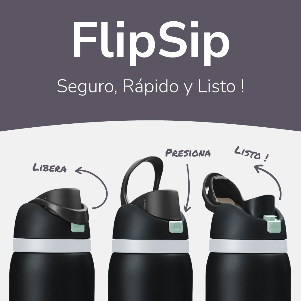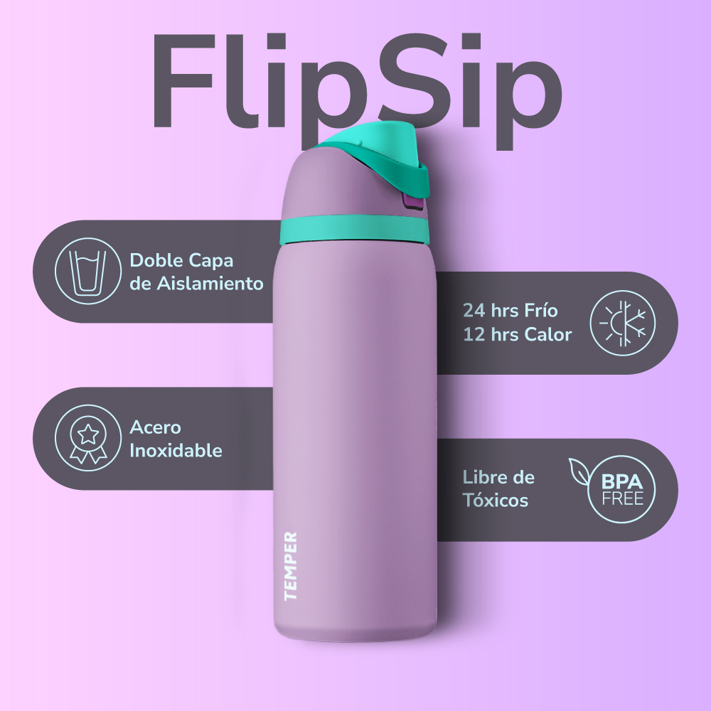 Temper FlipSip 1 Litro Azul con Tapa Purpura – Botella térmica de acero inoxidable con doble aislamiento al vacío.