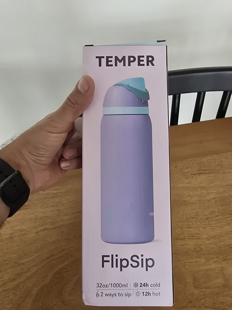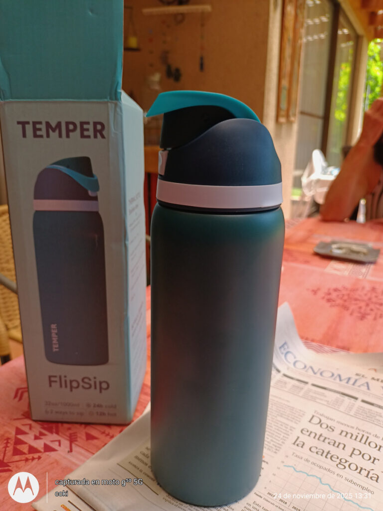 Temper FlipSip 1 Litro Blue – Botella térmica de acero inoxidable con doble aislamiento al vacío.