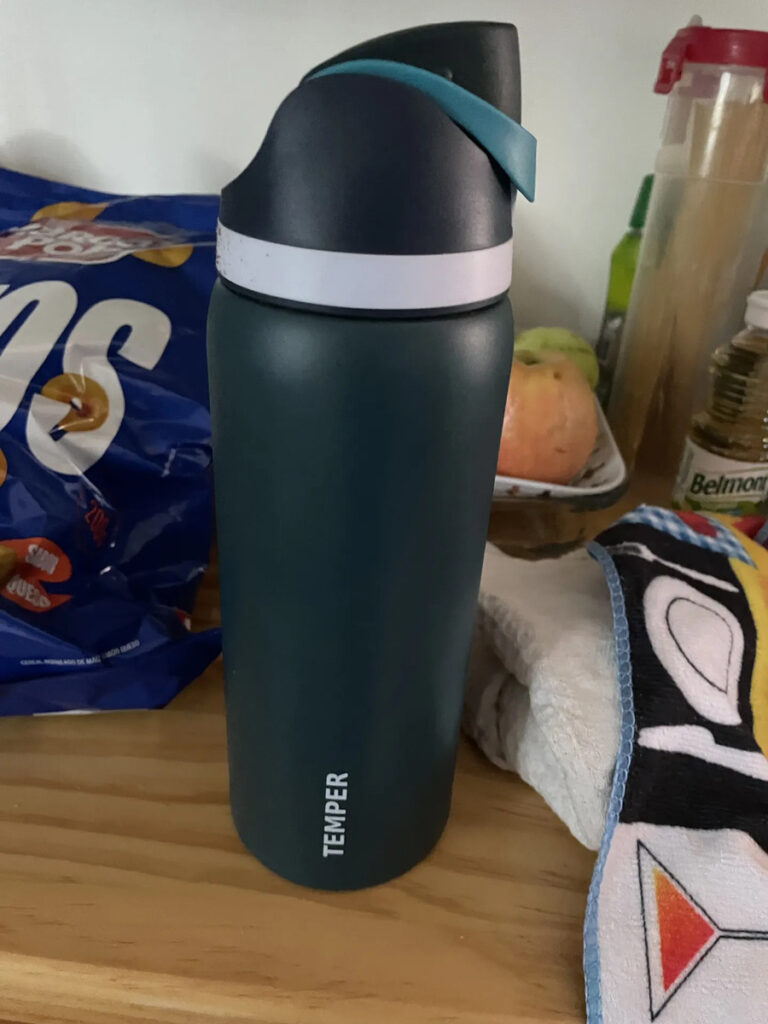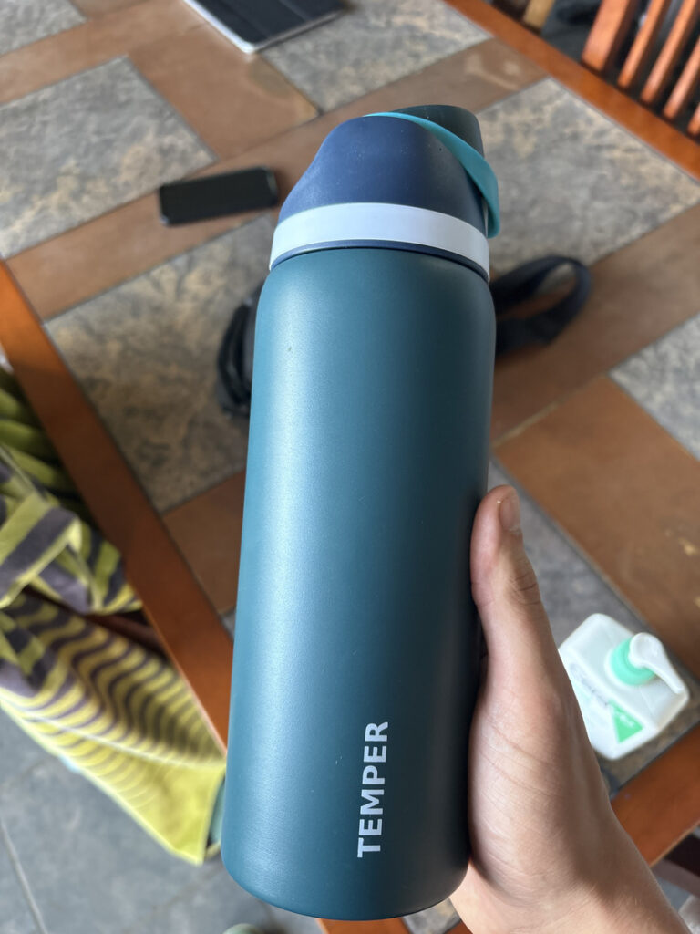 Material: calidad, mantiene el agua helada aunque la botella esté caliente por fuera.
