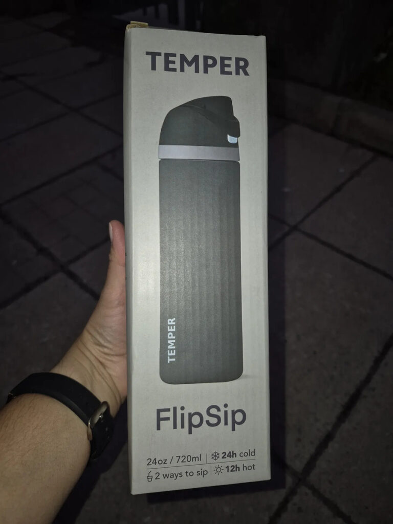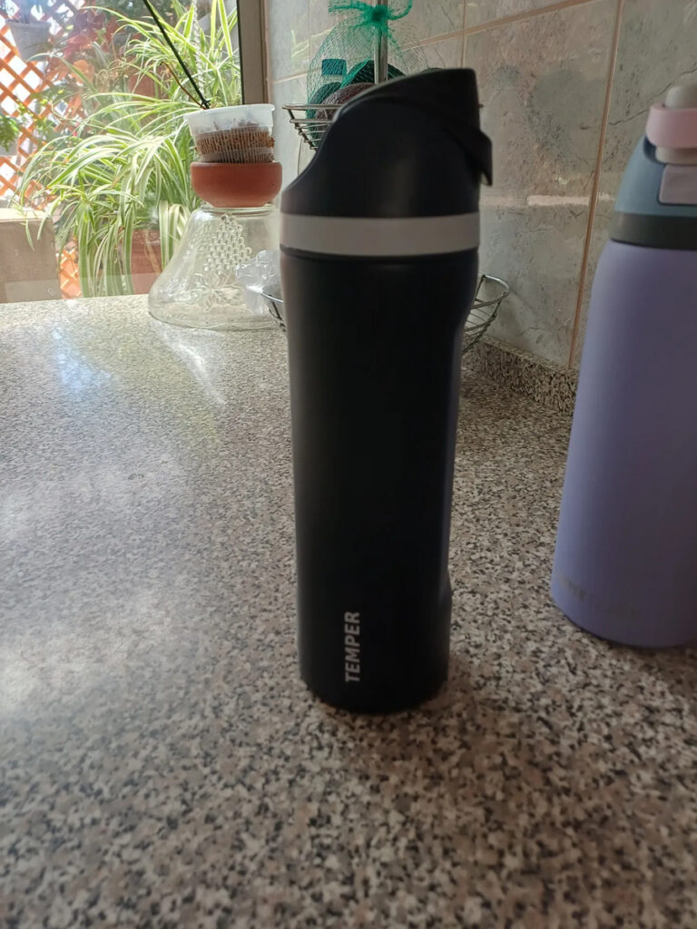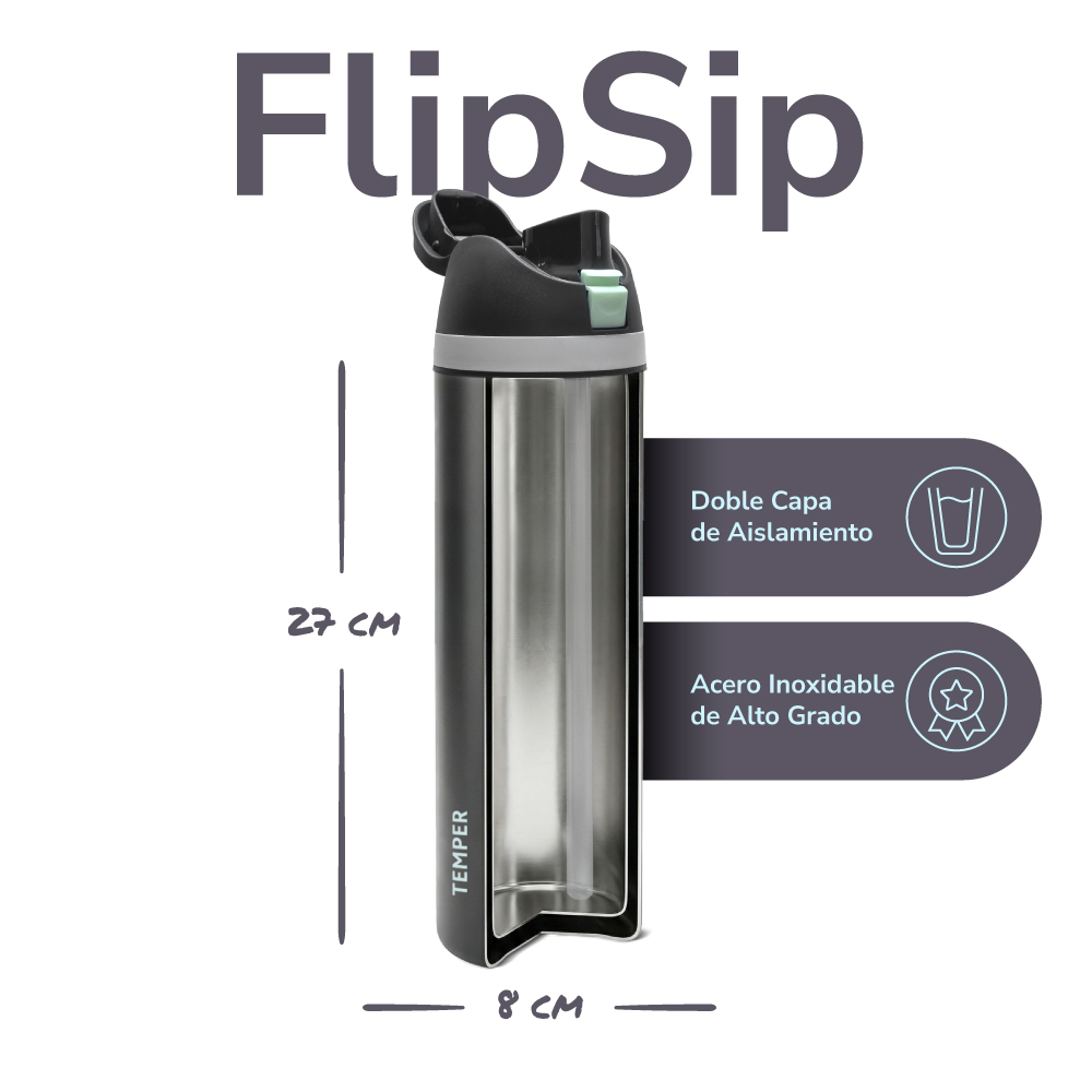 Temper FlipSip 700ml Black – Botella térmica de acero inoxidable con doble aislamiento al vacío.