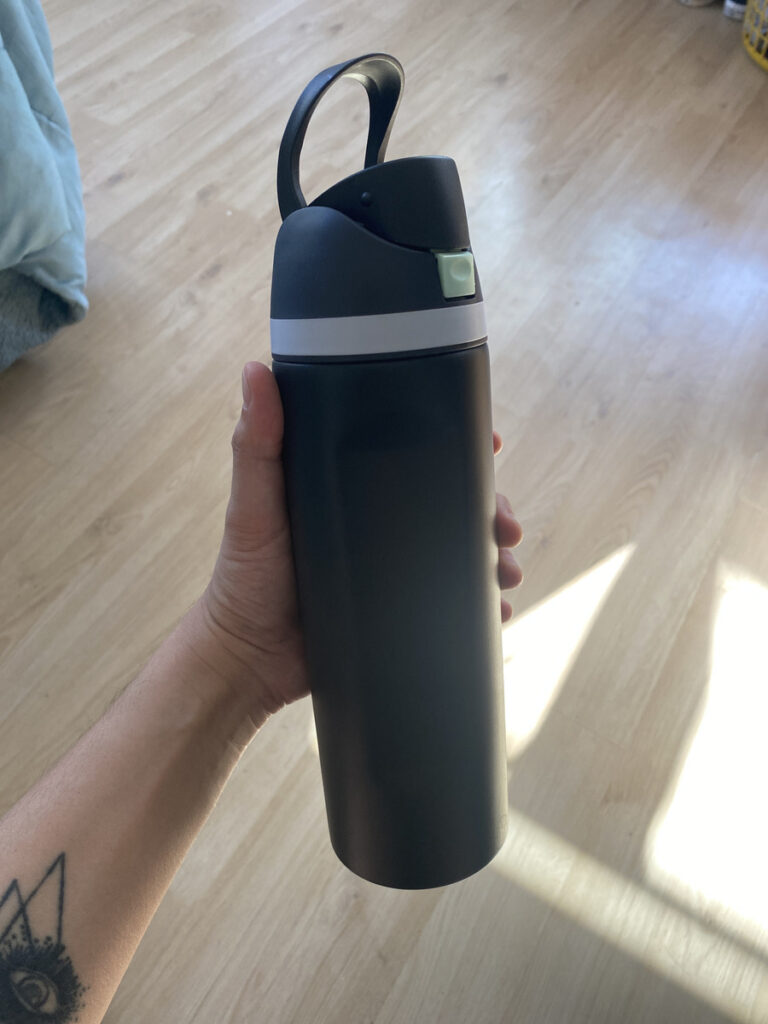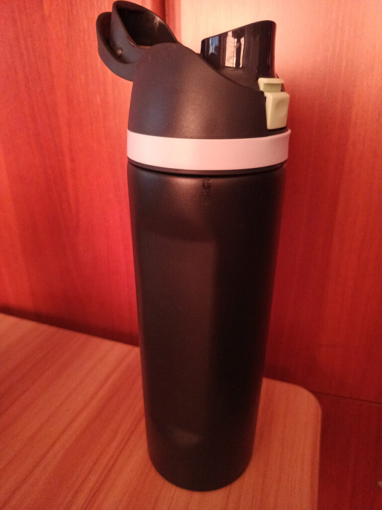 Muy bonita. Tal vez es un poco pesada pero eso es común en botellas térmicas. Lo que más me gustó es que tenga dos formas de tomar agua.